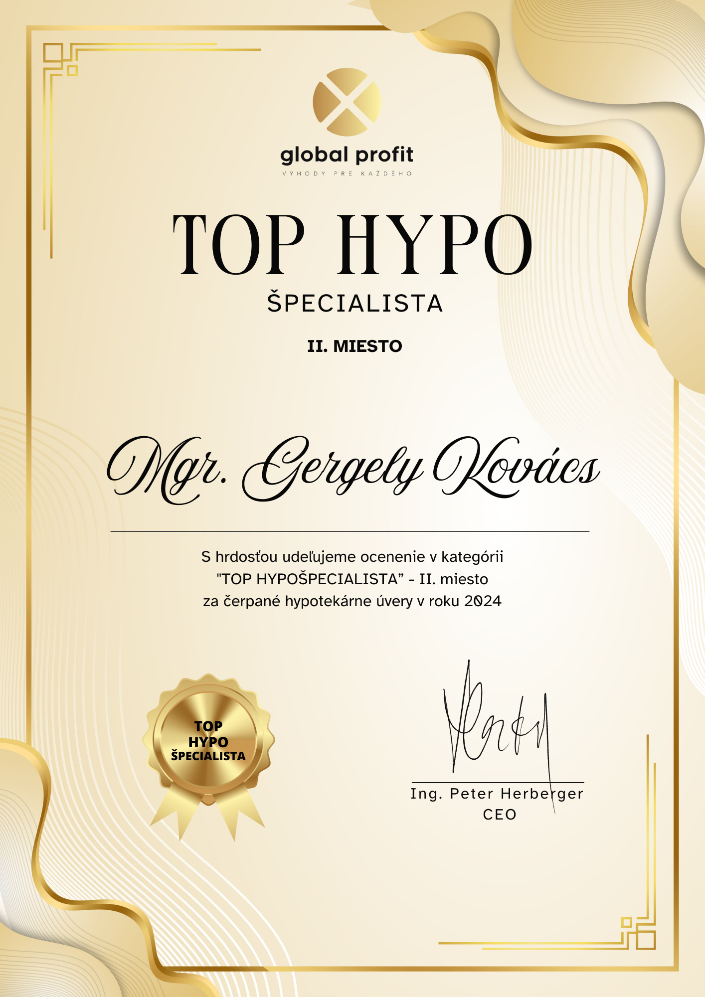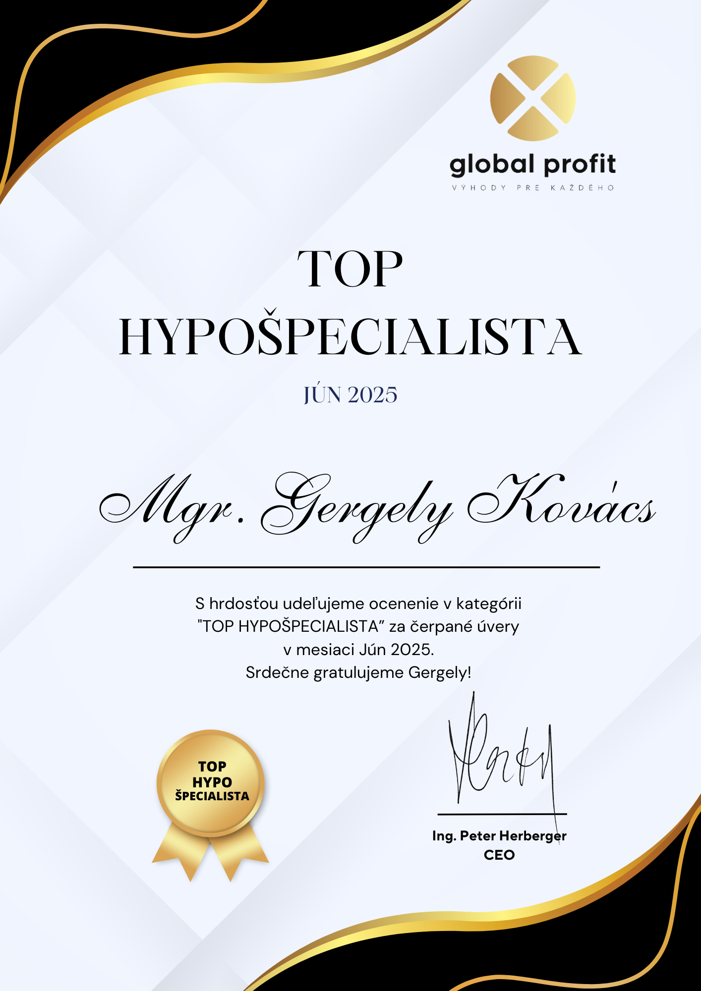 Gergely Kovács nie je len vynikajúci hypotekárny špecialista, ale aj dôležitý partner v našej firme. Spája v sebe profesionalitu, strategické myslenie a skutočný záujem o klienta. Jeho prístup posúva celý tím vpred a som rád, že spolu budujeme značku, pod ktorú sa môžeme všetci hrdo podpísať.