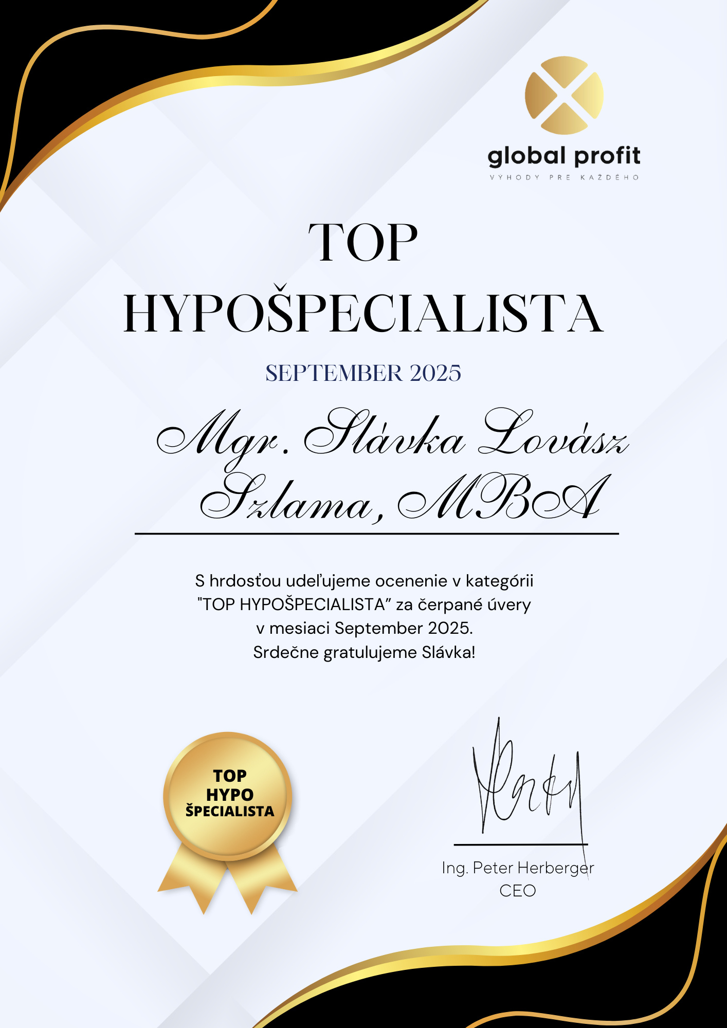 Moje meno je Slávka Lovás Szlama a som súčasťou tímu špecialistov na finančné produkty v spoločnosti Global profit. Mám za sebou 13 ročné skúsenosti vo finančníctve a súčasťou mojej kariéry sú aj reality, ktorým sa venujem 10 rokov. Práca v tomto sektore je veľmi dynamická, vďaka čomu mám prehľad o aktuálnom dianí na trhu nehnuteľností a tiež vo financiách. V mojej kariére sa stretávam s mnohými prípadmi, aj náročnými, na ktoré rada nájdem riešenie. Ku každému klientovi pristupujem individuálne, pričom v prvom rade prihliadam na ich potreby a aktuálnu životnú situáciu. Pomáham im v splnení ich sna o bývaní a to je to, čo ma v tejto práci napĺňa.